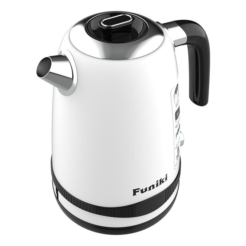 Funiki HKT5256 sở hữu màu trắng đen sang trọng, kiểu dáng nhỏ gọn với đế tiếp điện xoay 360 độ giúp đặt ấm xuống từ mọi hướng dễ dàng.