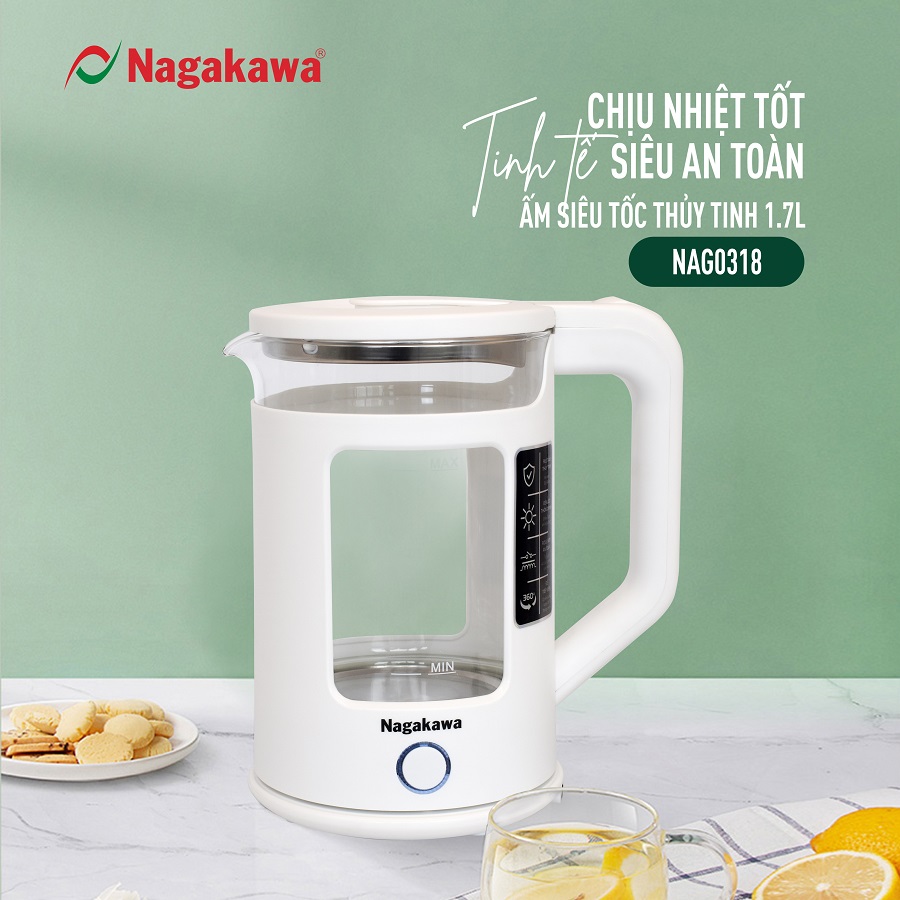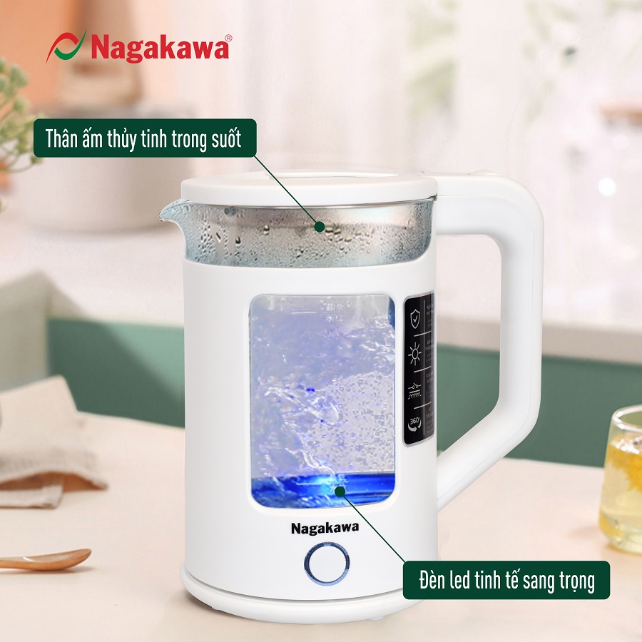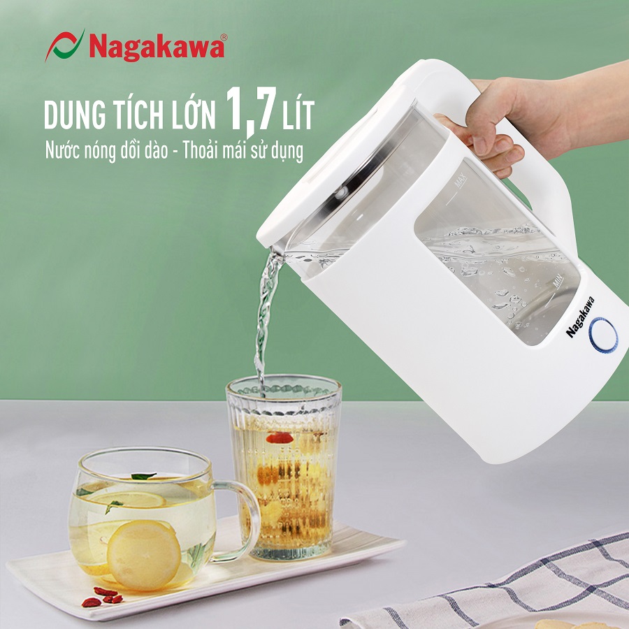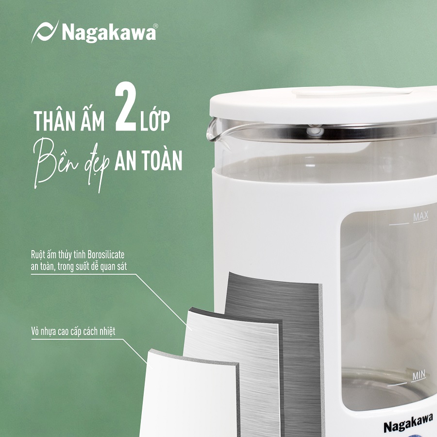 - Thân ấm thiết kế 2 lớp: vỏ nhựa cách nhiệt an toàn và ruột ấm thủy tinh Borosilicate trong suốt dễ quan sát