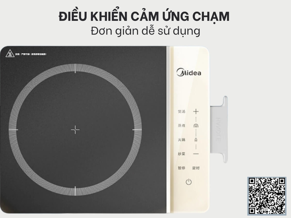 Bếp từ đơn Midea MIC221TLBGAE có hệ thống bảng điều khiển được thiết kế đơn giản, đảm bảo sử dụng dễ dàng, tiện lợi. Bao gồm các phím cảm ứng chạm hiện đại, siêu nhạy, người dùng dễ dàng điều khiển bếp chỉ với thao tác chạm nhẹ.