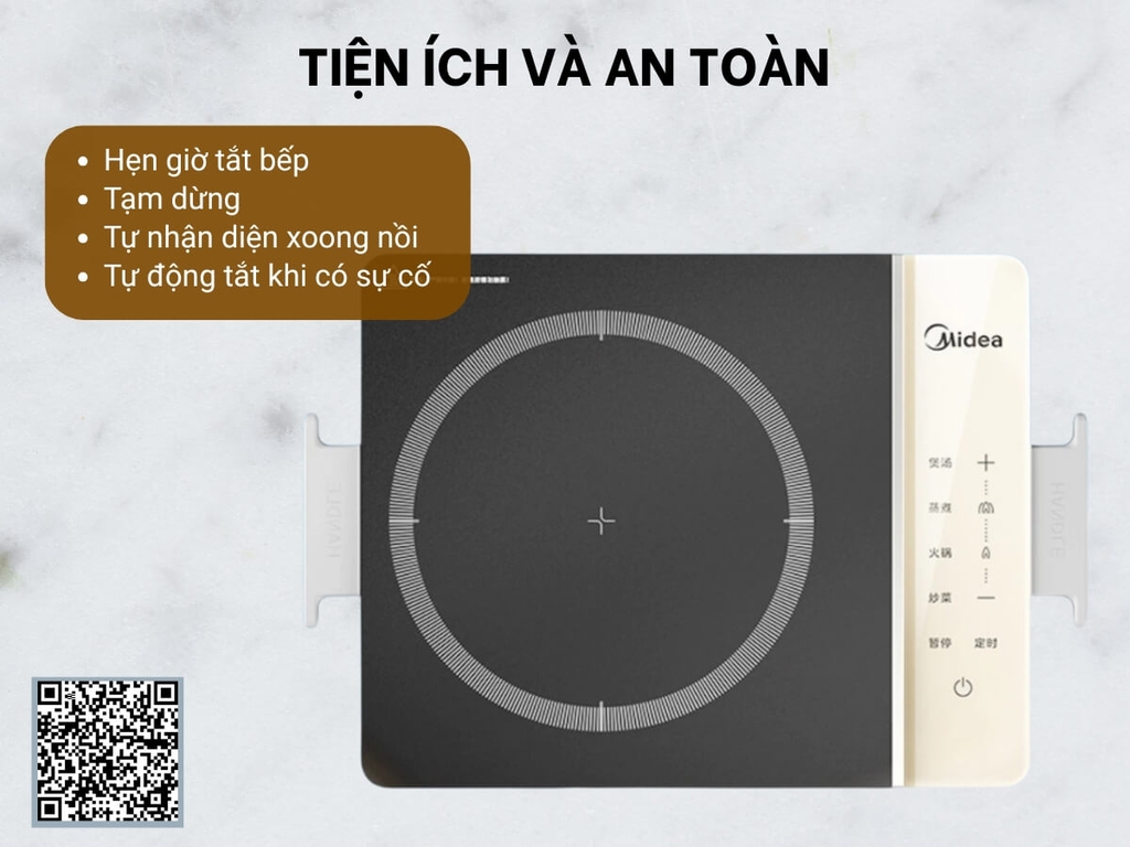 Bếp từ đơn Midea MIC221TLBGAE còn có tính năng tự nhận diện xoong nồi thông minh, có thể nhận diện được chất liệu đáy nồi, tự động phát cảnh báo khi sử dụng nồi nấu không phù hợp. Và gia nhiệt đúng vị trí có nồi, giúp nấu nhanh hơn và tiết kiệm điện năng hơn.