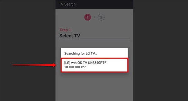 Sau đó ứng dụng sẽ dò tìm các tivi LG tương thích gần đó, lúc này bạn chọn vào tên tivi mà bạn muốn điều khiển.