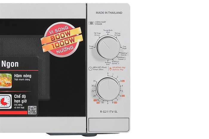 Lò vi sóng có nướng Sharp R-G211TV-SL 21 lít là sản phẩm đến từ thương hiệu Sharp - Nhật Bản, được sản xuất tại Thái Lan nên đảm bảo chất lượng.