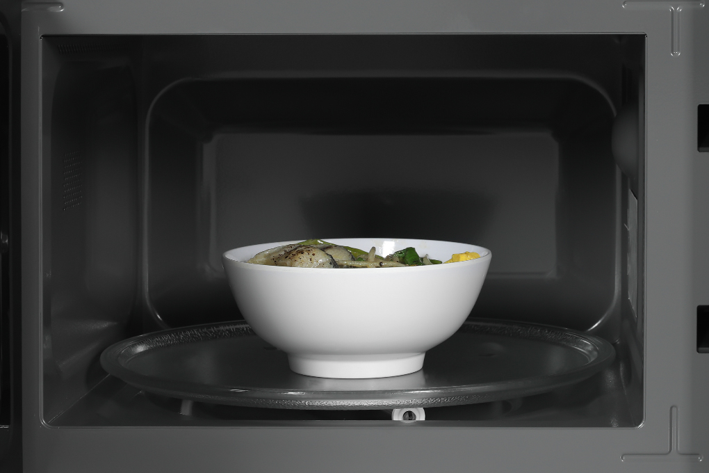 - Lò vi sóng này có trang bị chuông báo sau khi nấu xong giúp tránh tình trạng để quên thức ăn trong lò.