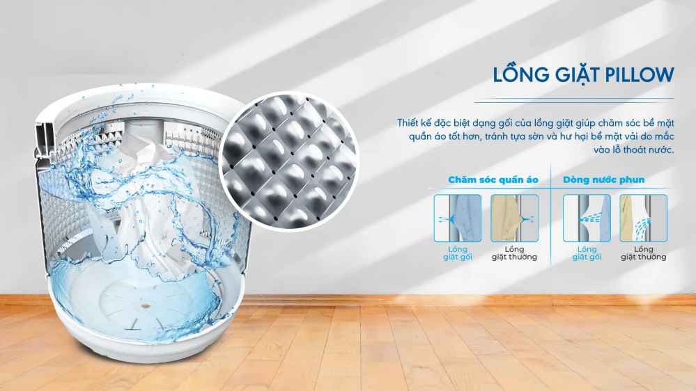 - Công nghệ giặt Jet Wash: Máy giặt Aqua AQW-FR110JT.BK sử dụng công nghệ giặt Jet Wash, một hệ thống phun nước mạnh mẽ từ đáy lồng giặt, giúp tăng hiệu quả giặt sạch, loại bỏ vết bẩn cứng đầu và vi khuẩn. Công nghệ này cũng giúp tiết kiệm nước và điện năng, so với các máy giặt thông thường.