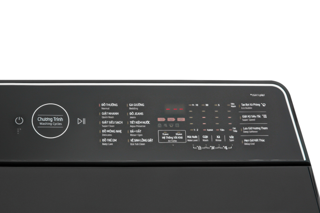 - Chế độ giặt Super Speed: Sử dụng vòi xịt nước siêu tốc và lực nước mạnh mẽ, thúc đẩy quá trình thẩm thấu của bong bóng siêu mịn vào quần áo, đồng thời rút ngắn thời gian xả - vắt để mang lại hiệu quả giặt sạch chỉ trong 59 phút.