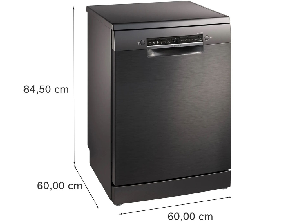Điểm nổi bật đầu tiên của máy rửa chén Bosch SMS4HMC25M là thiết kế độc lập, giúp người dùng có thể bố trí máy tại bất kỳ vị trí nào trong gian bếp mà không phụ thuộc vào tủ bếp. Thiết kế này vừa tạo sự linh hoạt vừa mang lại tính thẩm mỹ cao. Vỏ máy làm bằng thép không gỉ màu đen, sang trọng, dễ lau chùi và chống hoen gỉ, phù hợp với mọi phong cách nội thất từ hiện đại đến cổ điển.