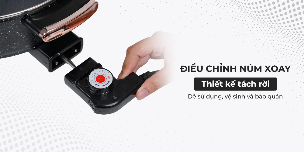 Nồi lẩu thiết kế bộ điều khiển nhiệt rời, giúp việc vệ sinh và bảo quản trở nên dễ dàng hơn.