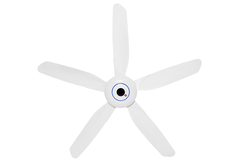 - 5 cánh quạt được thiết kế cong độc đáo với hiệu ứng 3D, đường kính khoảng 150 cm làm từ chất liệu PP và sợi thủy tinh (PPG) bền tốt, tạo luồng gió rộng, làm mát nhanh không gian phòng.