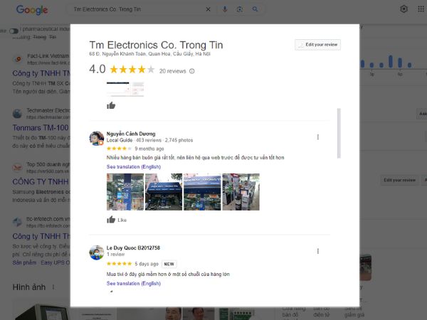 Đánh giá của người dùng về trải nghiệm tại Điện máy Trọng Tín
