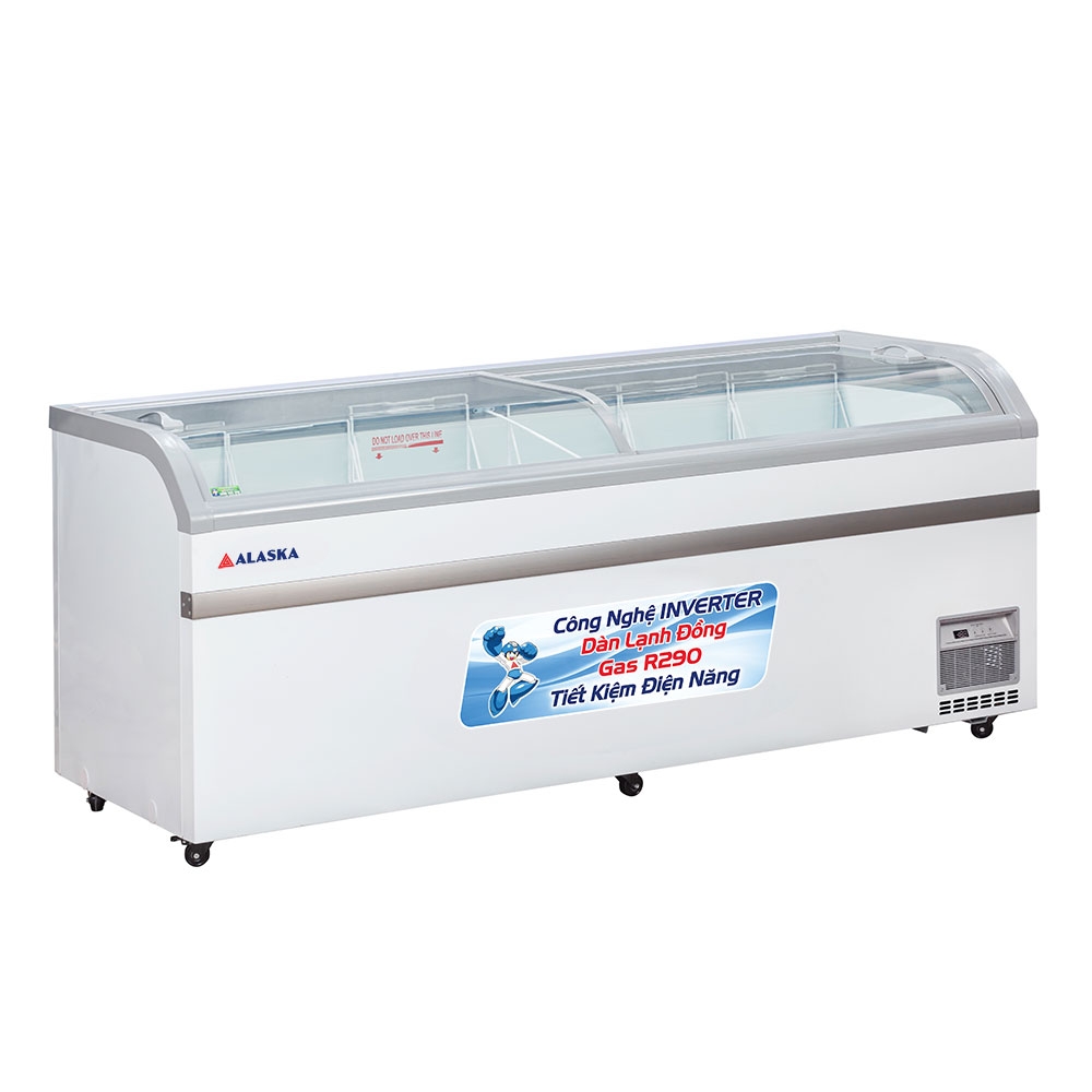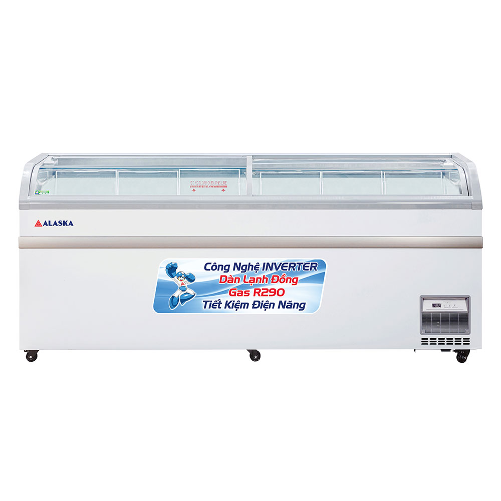 Tủ đông Alaska KC-550CI có mặt kính cong chịu lực chắc chắn, cách nhiệt hiệu quả giúp tủ đông giữ lạnh tốt hơn và tiết kiệm điện năng.