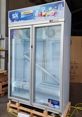 Tủ đông có dung tích lớn 1.200 lít, 2 cánh làm từ kính cường lực cùng đèn Led chiếu sáng, lý tưởng để trưng bày đồ uống, thực phẩm. Tủ đông đứng phù hợp sử dụng cho quán ăn, cửa hàng, siêu thị, nhà hàng...