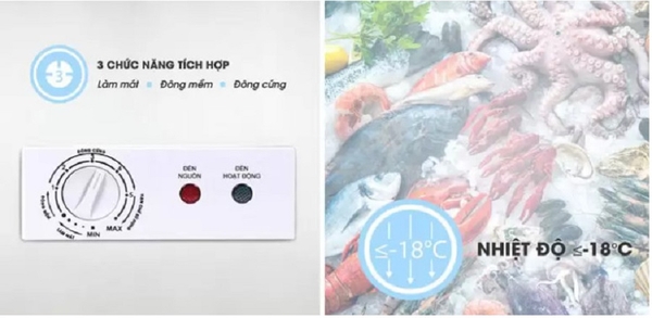 - Với thiết kế 1 ngăn tủ đông nhưng lại có đến 3 chức năng với các mức điều chỉnh nhiệt độ khác nhau để có thể phù hợp với nhu cầu sử dụng của người dùng.