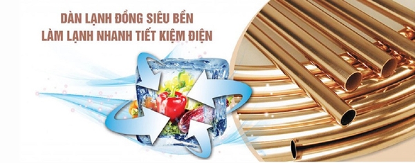 - Dàn lạnh bằng đồng nguyên chất giúp cho tủ đông dẫn nhiệt nhanh hơn, vận hành êm ái và tiết kiệm điện.