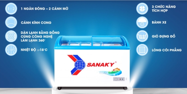 - Bề mặt kính có phủ lớp phản xạ nhiệt hạn chế tối đã việc hấp thụ nhiệt và thoát nhiệt lạnh ra ngoài, điều này giúp cho sản phẩm của Sanaky tiết kiệm điện.