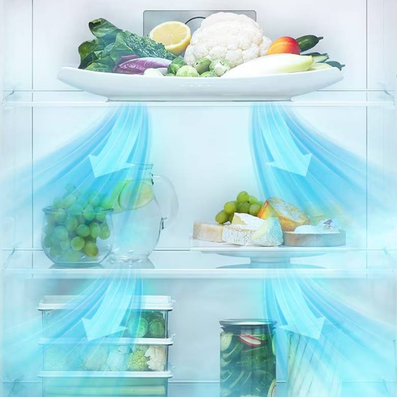 Hệ thống Multi Air Flow phân bổ luồng khí lạnh đều khắp các ngăn nhờ các lỗ thông gió được bố trí hợp lý. Các cảm biến kỹ thuật số liên tục theo dõi và điều chỉnh nhiệt độ, đảm bảo thực phẩm được bao bọc bởi khí mát, giữ độ tươi ngon lâu hơn, đặc biệt với thực phẩm nhạy cảm như rau xanh, thịt cá.
